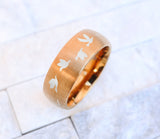 This is a beautiful one of a kind custom engraved Flying Birds ring on our domed brushed ring style. A truly one of a kind piece you won't find anywhere else.