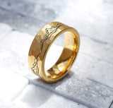 Hammered Gold Minimalist Mountain Wedding Band, Nature Forest Engagement Ring, Birds Proposal Ring, Nature Lover Wedding Ring Jewelry