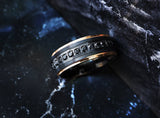 This is our beautiful Black diamond inlay ring with an 18k Rose gold band! Perfect for your marriage proposal. A beautiful ring to share with your best friend or soul mate. It is Unisex.