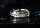 Check out our beautiful sterling silver brushed inlay with black diamonds wedding band, this brushed ring style is eye-catching and truly one of a kind. The beauty of its simplistic design will make anyone notice!