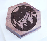 Nature Wedding Ring Box, Nature Engagement Ring Box, Adventure Stars Jewelry Box, Mountain Hiking Trees Engraved Personalized Proposal Box