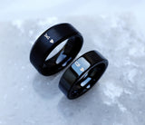 PLEASE NOTE** our beveled edge ring style (left ring) comes in 8mm ring width ONLY. Our flat ring style (right ring) comes in 6mm as default, but you can request either 4mm, 6mm, 8mm, or 10mm and add it to the personalization box.