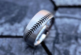 This is our beautiful custom made Baseball Stitching Engraved Ring. A truly one of a kind piece.