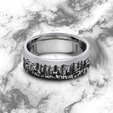 Antler Ring, Elk Wedding Bands, Elks in Mountains Forest landscape, Deer Ring, Hunter Ring, Hunter Wedding Band, Mountain Ring, Moose Ring