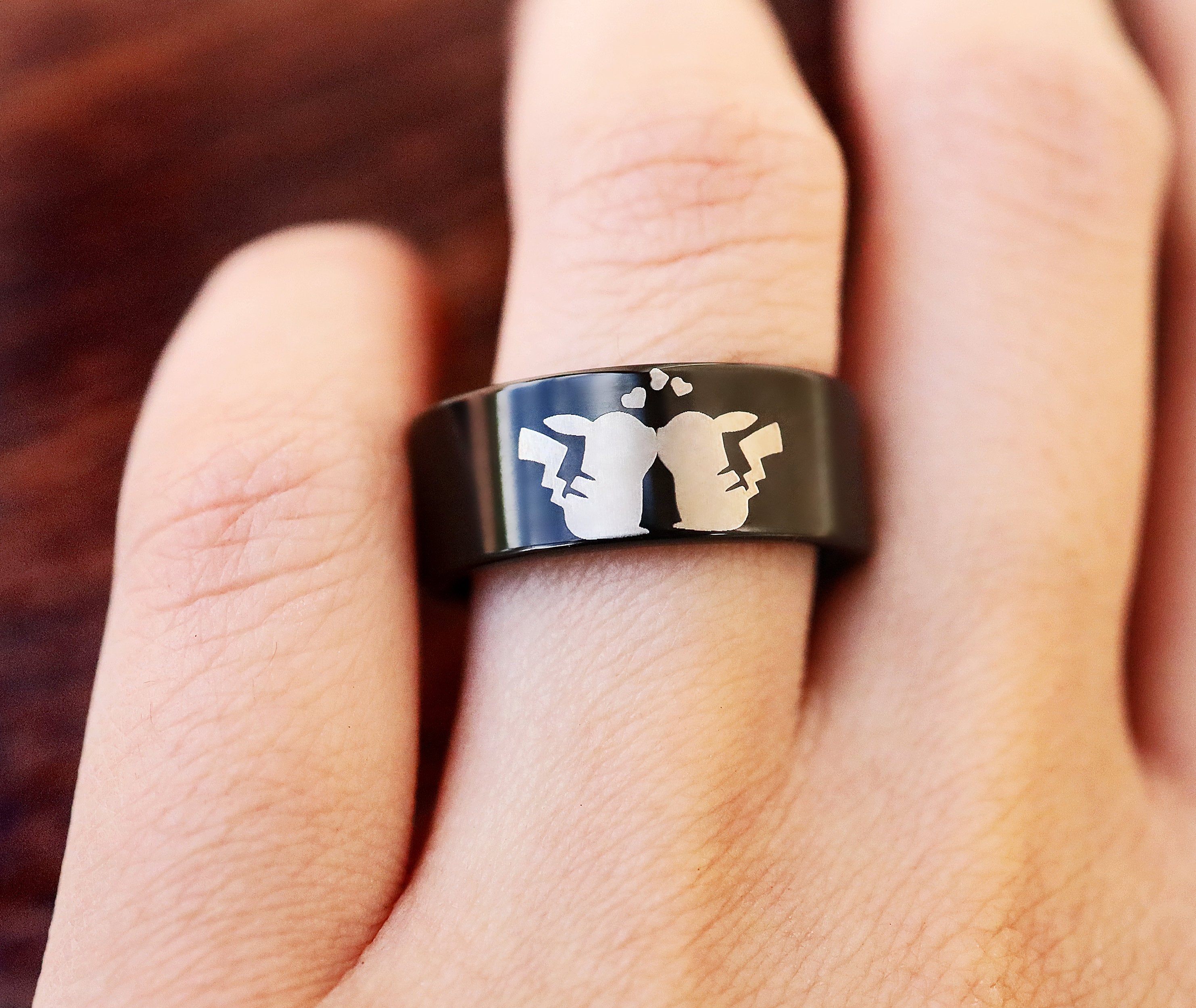 Pikachu Wedding Ring, Pikachu Couple Ring, Pikachu Engraved Ring, Pokemon Man Ring