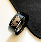 This is our super adorable 100% custom made Pokemon design where two pikachus are seen kissing each other on the front of our Black Tungsten Carbide Ring. Perfect gift for your loved one and pokemon fans!
