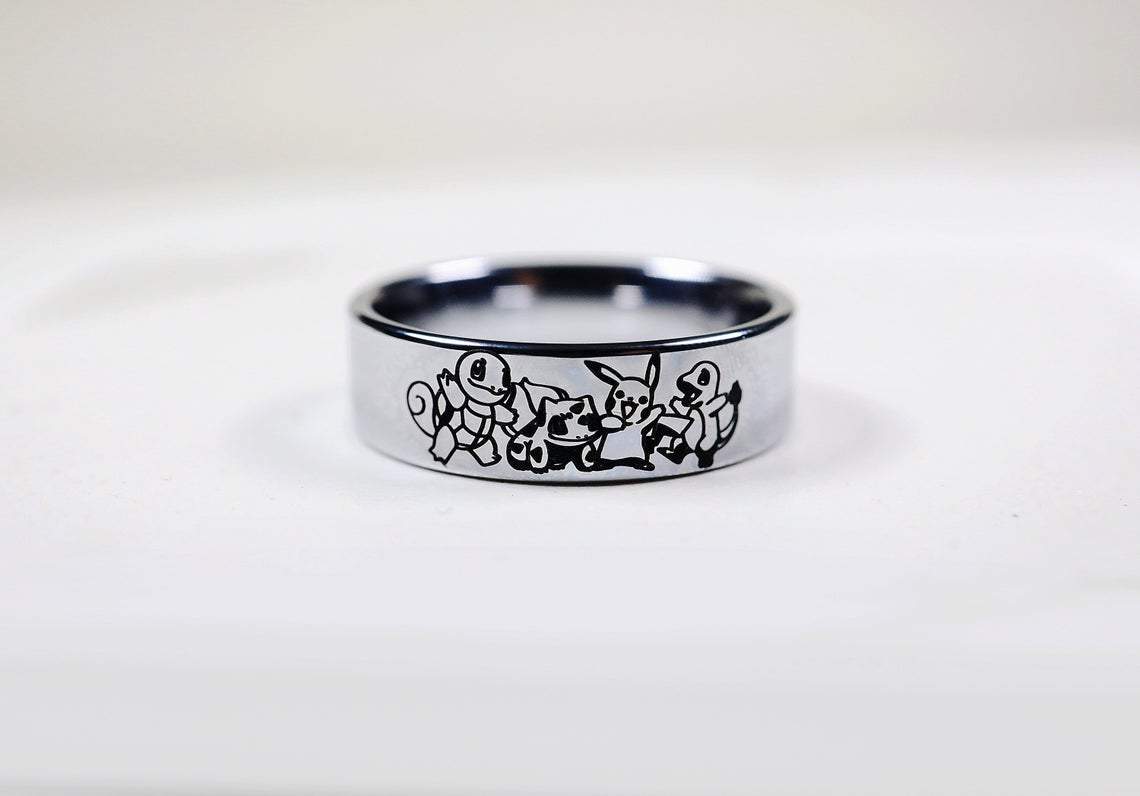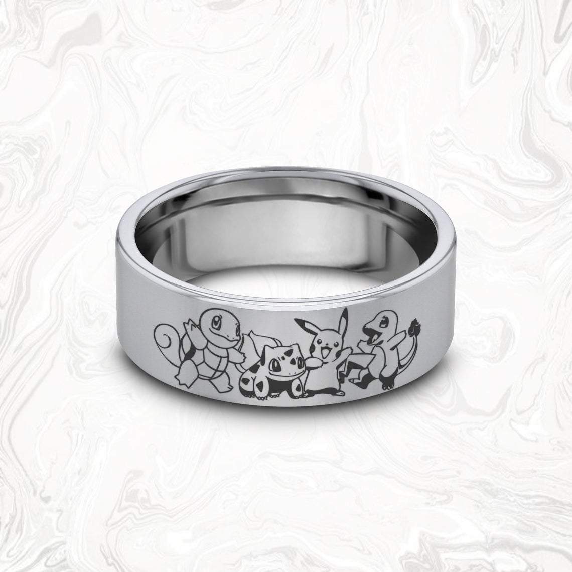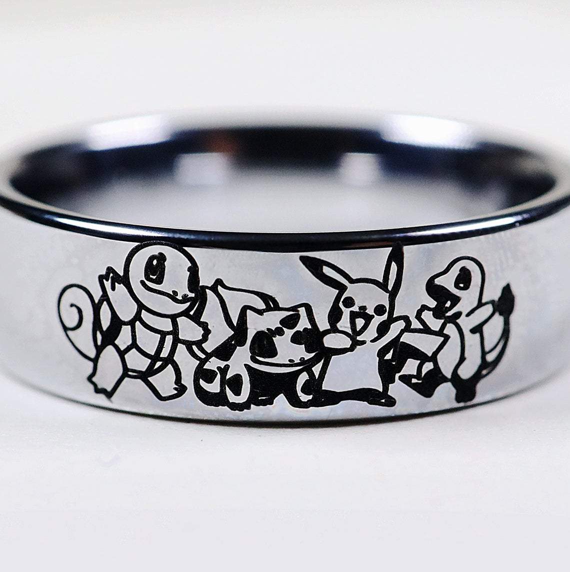 Pokemon Wedding Ring, Pokemon Wedding Band, Bulbasaur, Charmander, Pikachu, Squirtle