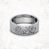This is an adorable custom engraved Starter Pokemon design on our Silver Tungsten Carbide Ring. We also have the option to engrave the inside of the inner ring as well for a fully personalized ring for your loved one :) We can also alter the design to your liking as well, just send us a message and we'll see what we can do for you!