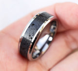 Black Lava Wedding Band, Lava Engagement Ring, Black Lava Rock Inlay Ceramic Wedding Ring, Real Lava Wedding Ring, Lava Rock Volcano Ring