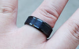 This is a highly sought after black lava stone inlay wedding ring! Rare rea black lava rock is inlaid into the center of the black ceramic band. The stone has beautiful natural pours/holes that give every ring a completely unique look. This is real lava stone that is used, no imitations!