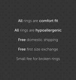 All of our rings are backed by a lifetime sizing exchange warranty. All size exchanges/replacements come with a small fee of $30 for each ring replaced. All you have to do is contact us and ship the ring back to us. International shipping rates apply for all size exchanges.