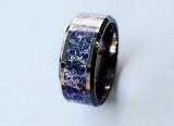 Personalized Men’s Polished Black Ceramic Wedding Band With Blue Lapis Inlay & Beveled Edges, Blue Lapis Wedding Ring - 8mm