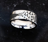 Love Birds Wedding Ring, Love Birds Wedding Band, Moon Engagement Ring, Nature Lover Wedding Promise ring, Flock of Birds Jewelry, Bird Ring