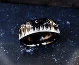Nature Landscape Mountain Range Wedding Band, Forest Engagement Ring, Mountain Ring, Forest Wedding Ring, Outdoor Wedding Ring, Tree Ring