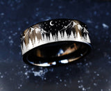 Nature Landscape Stars Wedding Band, Forest Engagement Ring, Mountain Ring, Forest Wedding Ring, Outdoor Wedding Ring, Stars Engagement ring